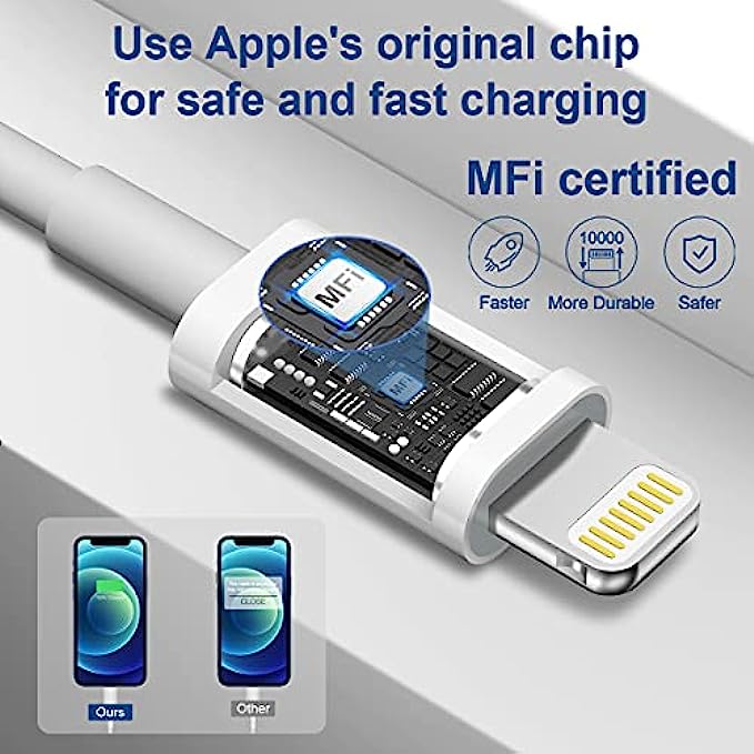 【Apple MFi Certified Lightning Cable】 With the Apple MFi Chip, the USB-C to lightning cable cord equips automatic chip recognition function. The Apple MFi Certification ensures 100% flawless compatibility with Apple devices. No more trigger warning messages.